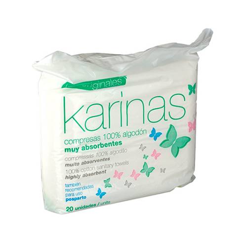 COMPRESAS KARINAS ALGODON 20 UND.